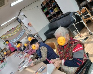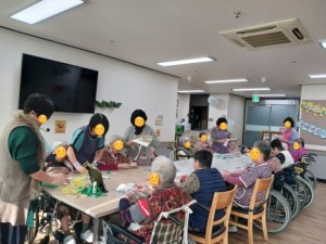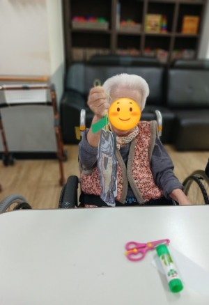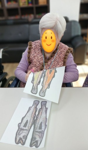 어르신들이 미술활동 프로그램시간에 코다리 만들기를 하셨는데 명태를 색칠해서