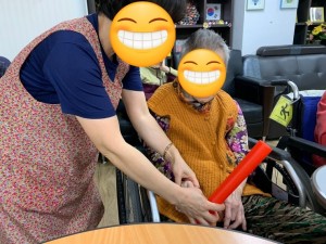기린 쉐이커를 리듬에 맞춰 흔들고 바통을 이용하여 스트레칭 하셨습니다.