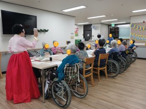 우리 고유의명절 추석을 맞이하여 복지사선생님이 어르신들과 함께